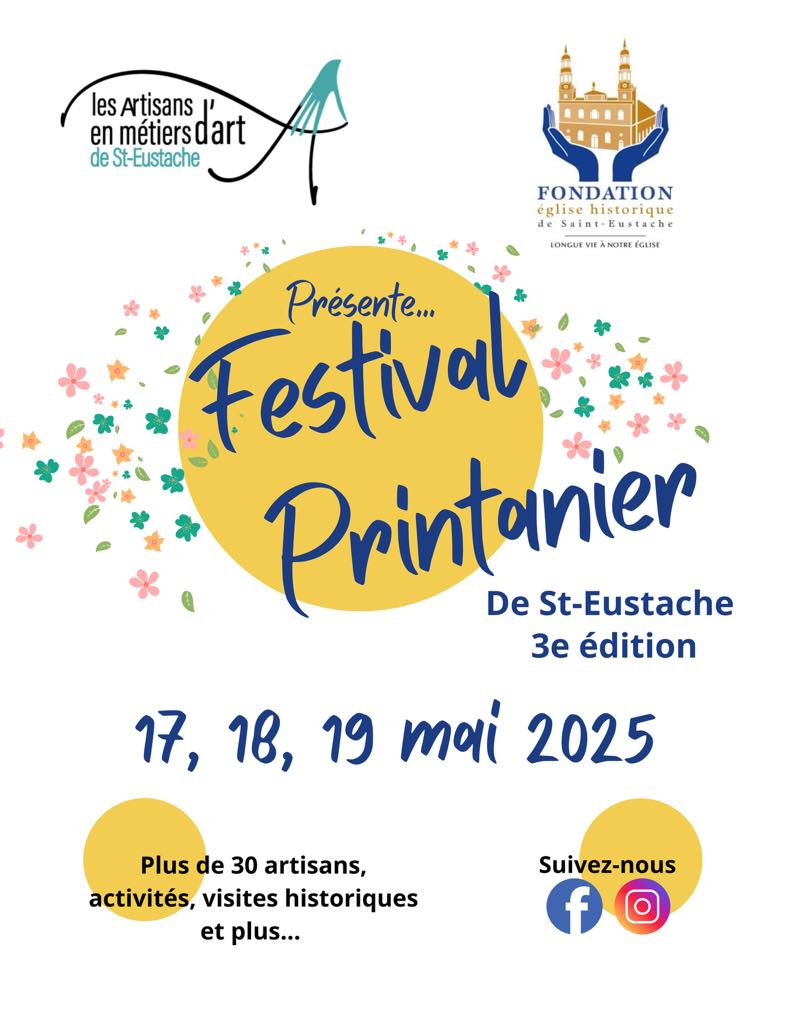 Le Festival printanier 2025 avance à grand pas. Une belle brochette d’artisans y seront, à l’intérieur de la salle Raymond et sous les chapiteaux dans les jardins derrière l’église St Eustache. Également, visites guidées de l’église et de ses dépendances, par Patrimoine culturel Vieux-Saint-Eustache, samedi et lundi de 09h30 à 16h00 et dimanche de 12h00 […]